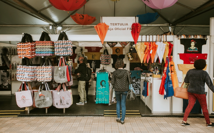 oficial de itens de presente com a logo e temática da FIL. O espaço,