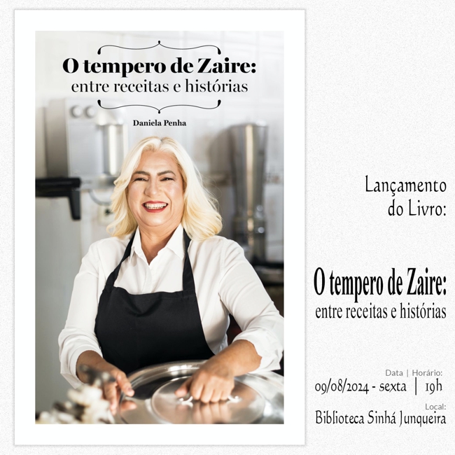 (dia 9/08), às 19h, lançará o livro O tempero de Zaire: Entre