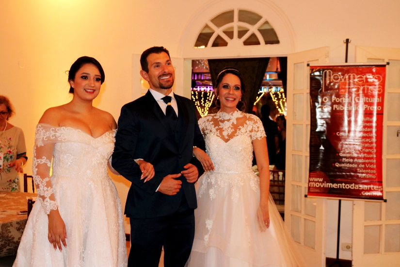 O "noivo do CASAR ao vivo", vestindo um terno de Tratto Sottile, também passeou pelo evento acompanhado das duas noivas.