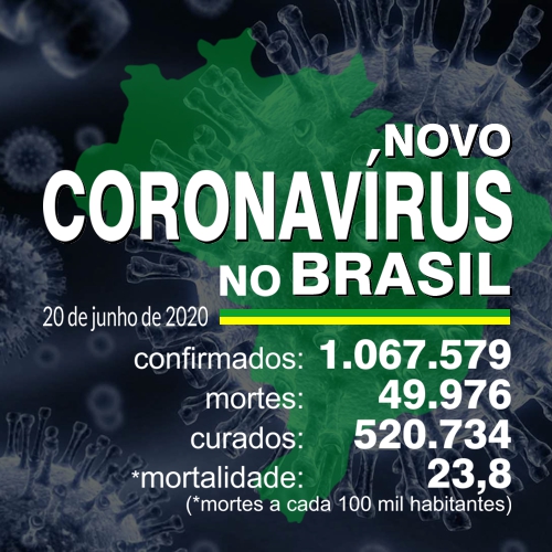 totalizando 1.067.579 de casos confirmados. A marca de 1 milhão