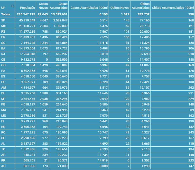 confirmados, eram 12.984.956 no domingo (04)