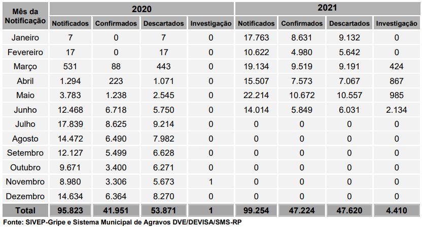 boletim epidemiológico da Secretaria Municipal da Saúde de Ribeirão