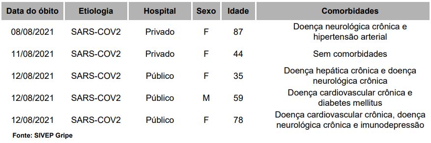 As mortes registradas ocorreram entre os dias 08 e 12 de agosto de