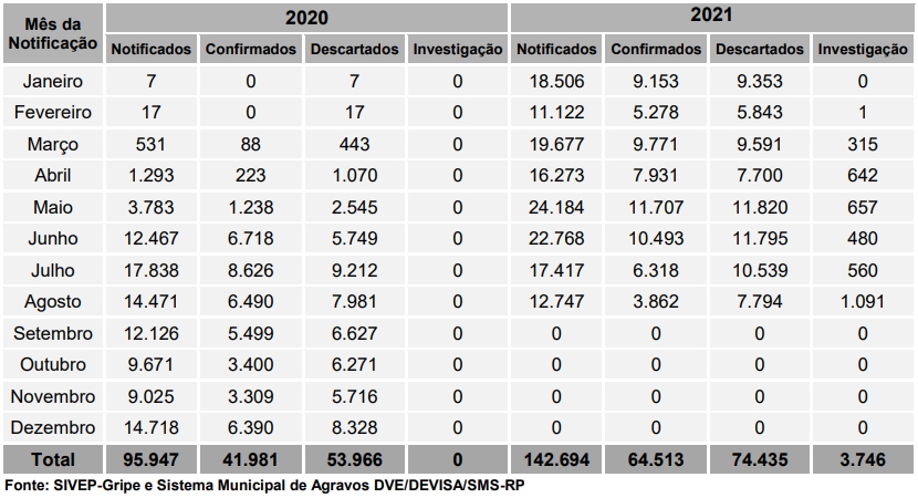 boletim epidemiológico da Secretaria Municipal da Saúde de Ribeirão