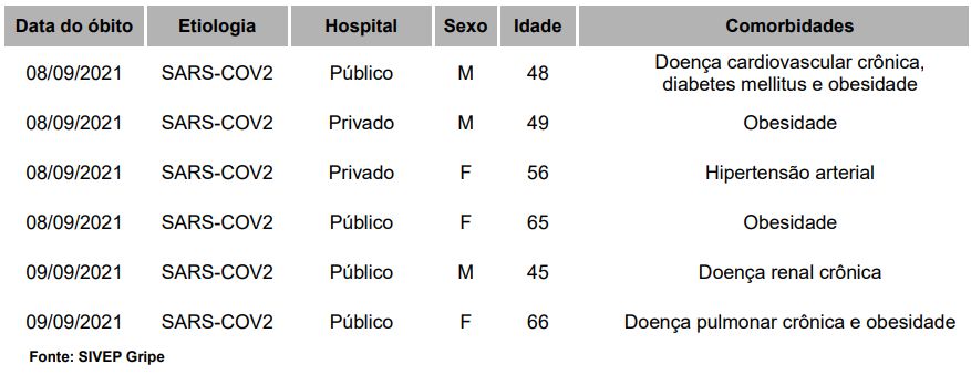 mortes registradas neste boletim ocorreram entre os dias 08 e 09 de