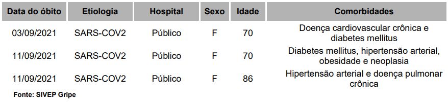 mortes registradas ocorreram entre os dias 03 e 11 de setembro de