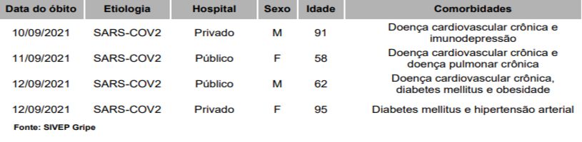 mortes registradas neste boletim ocorreram entre os dias 10 e 12 de