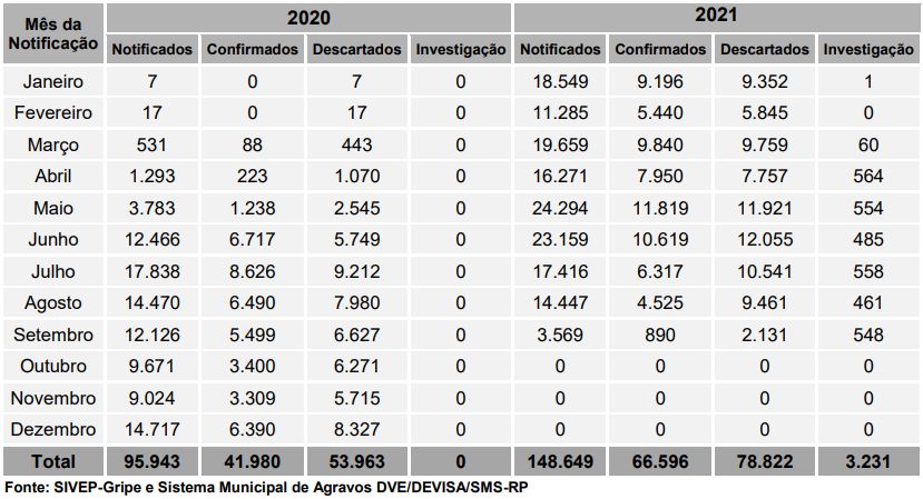 boletim epidemiológico da Secretaria Municipal da Saúde de Ribeirão