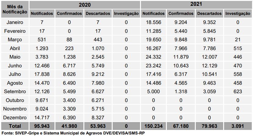 boletim epidemiológico da Secretaria Municipal da Saúde de Ribeirão