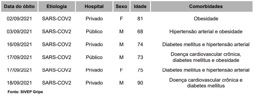 As mortes registradas ocorreram entre os dias 02 e 18 de setembro de