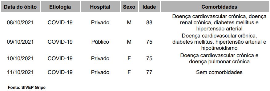 mortes registradas neste boletim ocorreram entre os dias 08 e 11 de