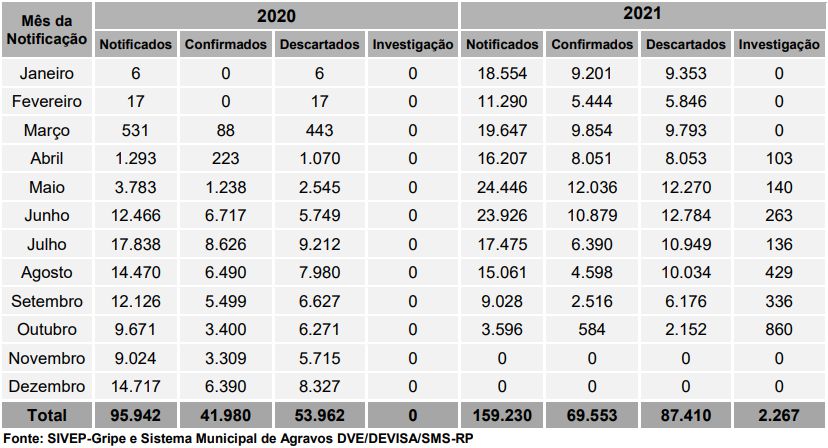 boletim epidemiológico da Secretaria Municipal da Saúde de Ribeirão
