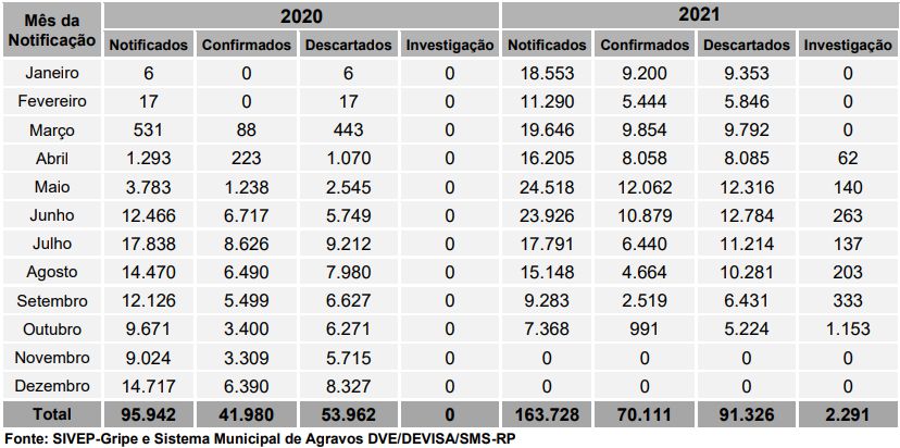 boletim epidemiológico da Secretaria Municipal da Saúde de Ribeirão